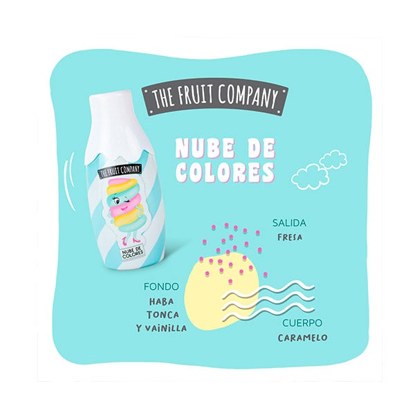 Dê aos seus sentidos um prazer tentador com a nova Colônia Nuvem de Cores The Fruit Company. Um aroma doce e alegre que fará você se sentir nas nuvens, criando uma sensação na pele doce e macia como os marshmallows que não poderiam faltar na sua bolsa de doces. Diga adeus aos cheiros entediantes com a Eau de toilette Nuvem de Cores Candy Edition. A fragrância perfeita para se tornar irresistível e cheirar como o céu!