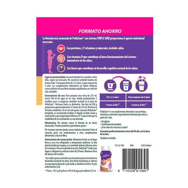 La fórmula avanzada de PediaSure con sistema TRIPLE SURE proporciona el aporte nutricional necesario.