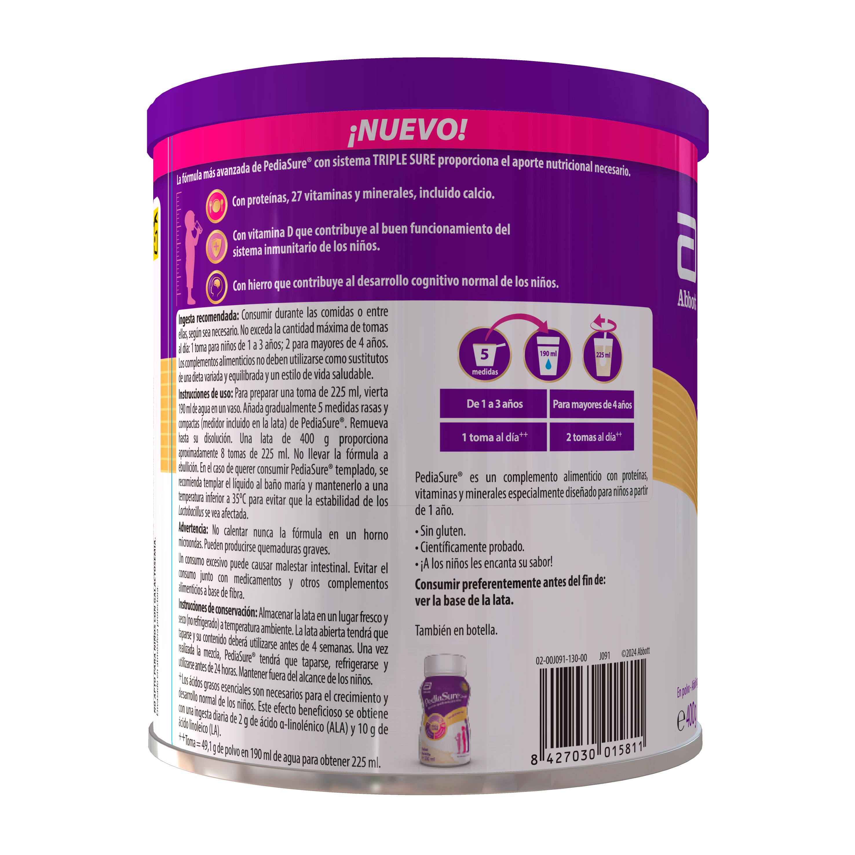 A fórmula mais avançada de PediaSure com sistema TRIPLE SURE proporciona o aporte nutricional necessário.