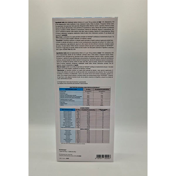 Leche entera deslactosada (lactosa inferior a 0,1 g por 100 g), Proteína de LECHE 7,5%, Maltodextrina, FOS (Fructo-oligosacáridos), Almidón de maíz modificado, Carbonato cálcico, Citrato potásico, Trimagnesio dicitrato anhidro, Gluconato de hierro, Gluconato de zinc, Gluconato de cobre, Sulfato de manganeso, Vitamina C (ácido L-ascórbico), Acetato de vitamina E, Vitamina B3 Niacina (Nicotinamida), Ácido pantoténico (D-pantotenato cálcico), Vitamina B6 (clorhidrato de piridoxina), Vitamina A (acetato de retinilo), Vitamina K2 (menaquinona), Vitamina B2 (riboflavina) vitamina D (colecalciferol), vitamina B1 (clorhidrato de tiamina), selenito de sodio, ácido fólico, yoduro de potasio, vitamina B12 (cianocobalamina), biotina (D-biotina), espesante carragenano, estabilizador: fosfato sódico. Aromatizantes. Edulcorante: sucralosa. Para los alérgenos, véanse los ingredientes en negrita.