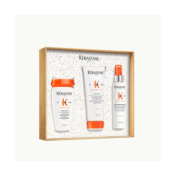 Para quem é pensado este estojo? Descubra o presente perfeito para o cuidado do cabelo seco de fino a médio. Nosso trio de edição limitada, com ingredientes nutritivos como extrato de rizoma de íris e extrato de geleia real, proporciona um cuidado profissional para uma nutrição essencial e um cabelo mais saudável. Presenteie com o conjunto de luxo ideal para cachos hidratados, sedutores e revitalizados.