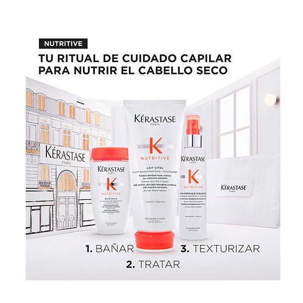 • Lait Vital, 200 ml Um condicionador desembaraçante ultraleve altamente nutritivo para cabelo seco de fino a médio.