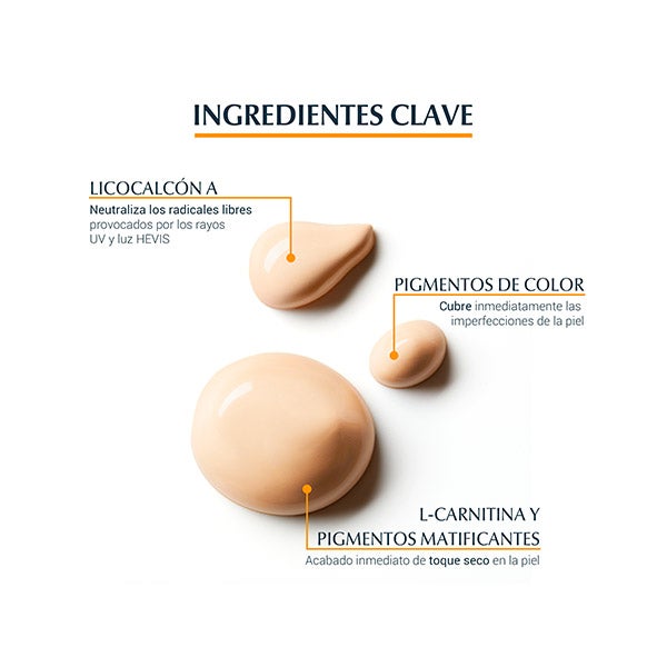 > Com pigmentos de cor para um duplo efeito: cobertura imediata das imperfeições da pele e proporciona proteção contra a luz visível de alta energia (HEVL).