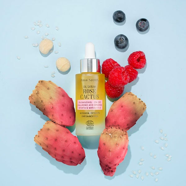 Rose Cactus Oil é um óleo facial de próxima geração que atua ativando a renovação celular, reconstruindo e fortalecendo a barreira cutânea, melhorando sua resistência frente aos fatores desencadeadores do estresse diário, revitalizando a pele estressada e aumentando sua luminosidade.