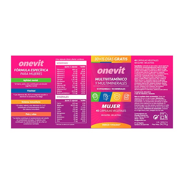 - Onevit Multivitaminico Mujer 45Caps Vegetales