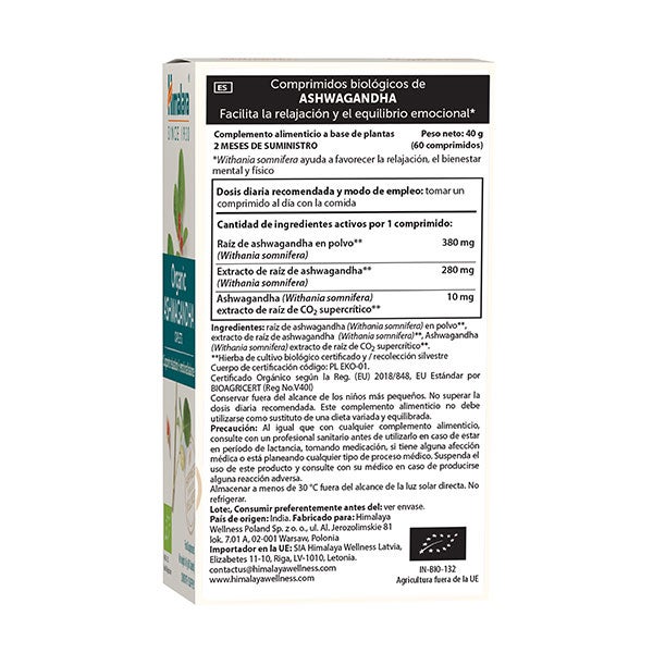 Ashwagandha Orgânica HIMALAYA. Favorece a resistência ao estresse, o relaxamento e o equilíbrio emocional