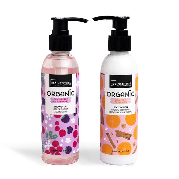 Nosso conjunto Organic oferece um cuidado corporal completo. Contém um gel de banho e uma loção corporal com uma fragrância cativante de laranja, canela, amora e mirtilo.