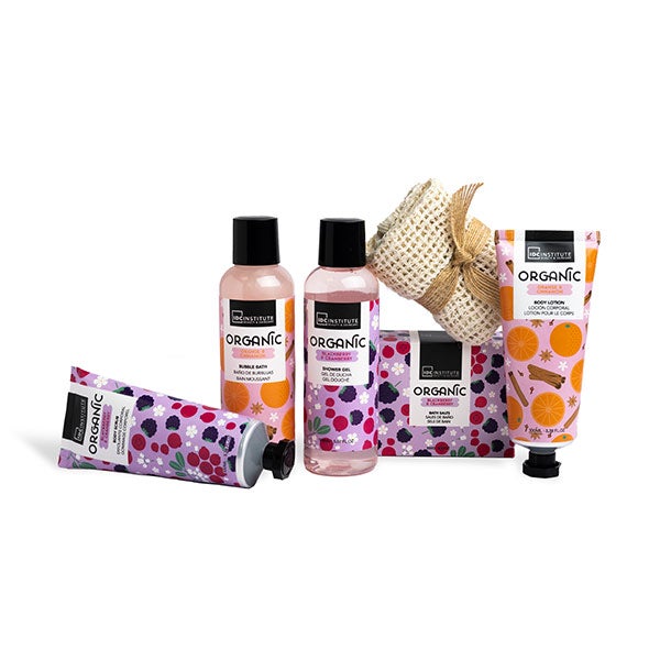 Transforme sua casa em um oásis de bem-estar com nosso completo conjunto Organic. Inclui gel de banho, banho de espuma, loção corporal, esfoliante corporal, esponja Sisal e sais de banho, todos com o cativante aroma de laranja, canela, amora e mirtilo.