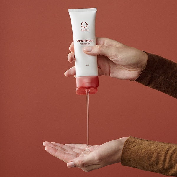 OrganiWash é o último limpador 2 em 1 para usuárias de copos menstruais: use-o para limpar seu copo menstrual antes de cada inserção, após a remoção e como um sabonete íntimo de pH equilibrado para o seu corpo.