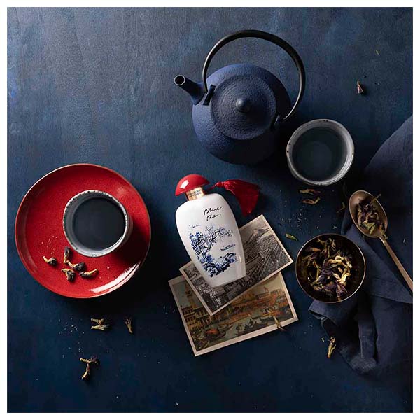 Blue Tea é inspirada nas fragrâncias e materiais mais preciosos das tradições asiáticas e coloca no centro da composição o chá azul, um chá chinês muito apreciado, também conhecido como flores de ervilha-borboleta de BlueChai, pertencente à espécie Oolong.