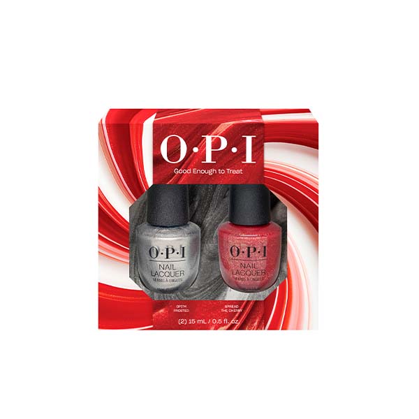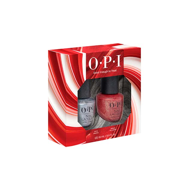 O conjunto duo Good Enough to Treat contém dois novos tons de esmalte de unhas em um único pacote. Presenteie este duo de tons de esmalte de unhas da OPI para dar um toque doce às festas.