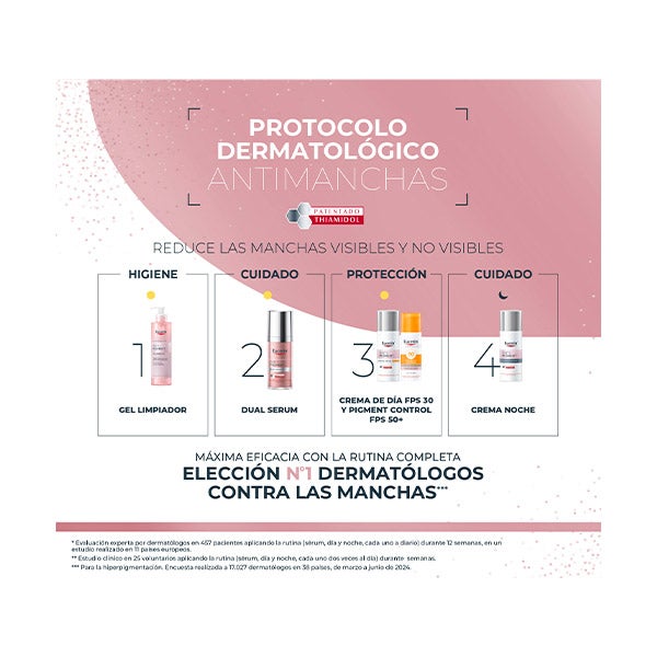 O Anti-Pigment Dual Serum (30ml) está formulado com Thiamidol® patenteado, o ativo mais eficaz contra as manchas*, que reduz a produção de melanina desde o primeiro dia e previne o reaparecimento de manchas.