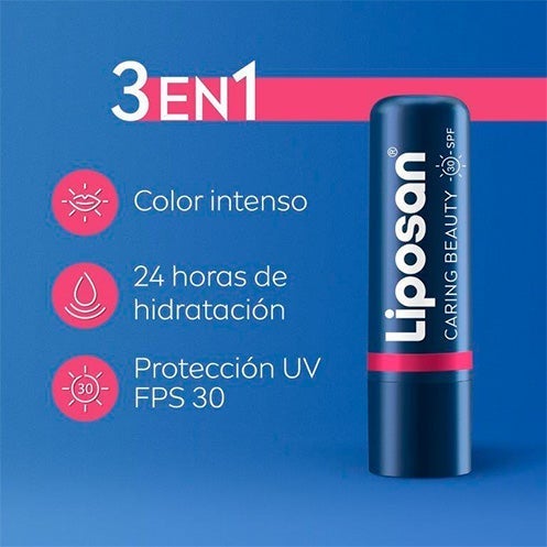 LIPOSAN Caring Beauty Pink Bálsamo 3em1 Lábios e Bochechas Cor Intensa SPF30 4,8g