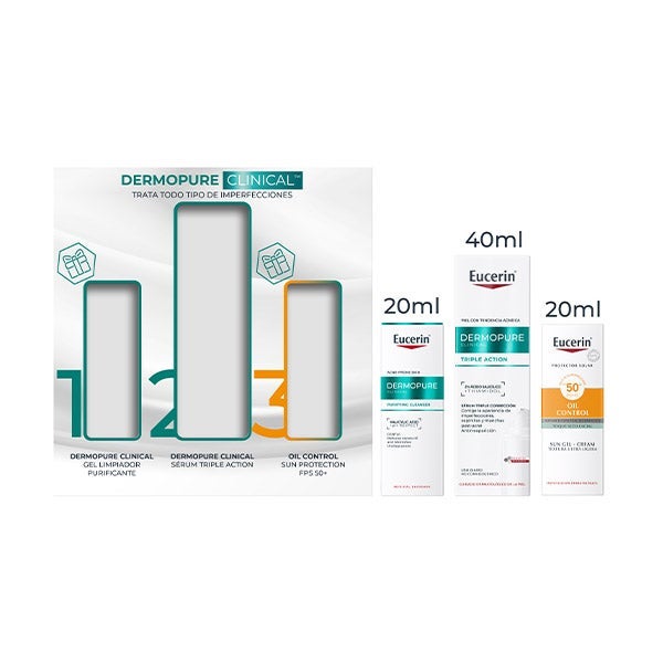 Pack Eucerin Pele Oleosa DermoPure Sérum + Mini Gel de Limpeza 20 ml + Mini Solar 20ml