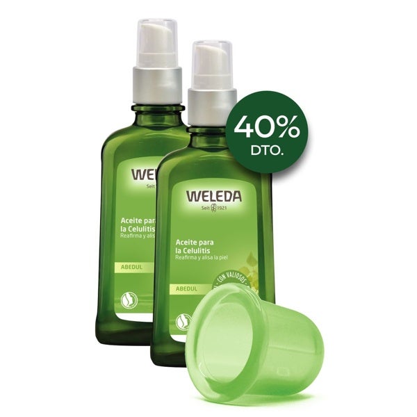 Tratamento Anticelulite 100% natural e BIO com óleo de Bétula da Weleda, reconhecido como o produto Nº 1 no mercado durante cinco anos consecutivos. Agora, aproveite um pacote com 40% de desconto que inclui a Celulicup de presente para potencializar sua massagem! Dedique apenas 5 minutos por dia para combater a celulite com a Celulicup, a ferramenta da Weleda que estimula a circulação sanguínea, diminui a celulite, firma e melhora a textura da pele, e ajuda a drenar a retenção de líquidos.