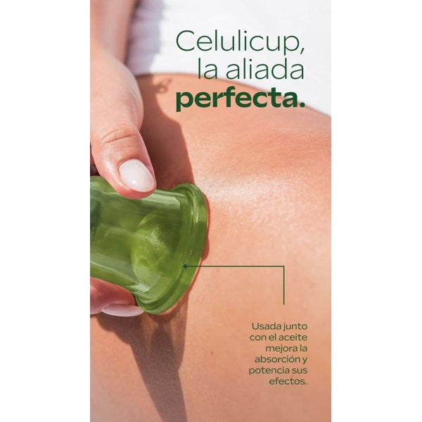Este tratamento proporciona uma dupla ação: redutora e firmadora. Através de uma massagem com óleo de Bétula, ativa-se o metabolismo da pele e melhora-se a circulação, o que contribui para reduzir a celulite e a retenção de líquidos. Este óleo não só ajuda a eliminar toxinas, mas também melhora a textura da pele. A fórmula avançada do tratamento tonifica e firma a pele, favorecendo a produção de colágeno e elastina, essenciais para manter sua firmeza e elasticidade. Ao ser utilizado em combinação com a Celulicup, potencializa-se a microcirculação e a absorção dos ingredientes ativos, maximizando os benefícios do tratamento. Como resultado, obtém-se uma pele mais suave, flexível e visivelmente tonificada, oferecendo resultados duradouros com uso constante.