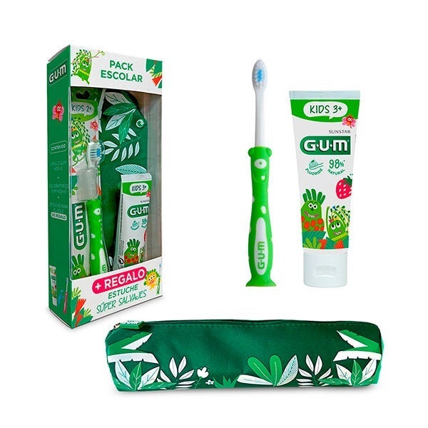 Inclui uma escova e uma pasta de dentes GUM KIDS ideal para crianças entre 3 e 6 anos, além de um prático estojo para transportar tudo.