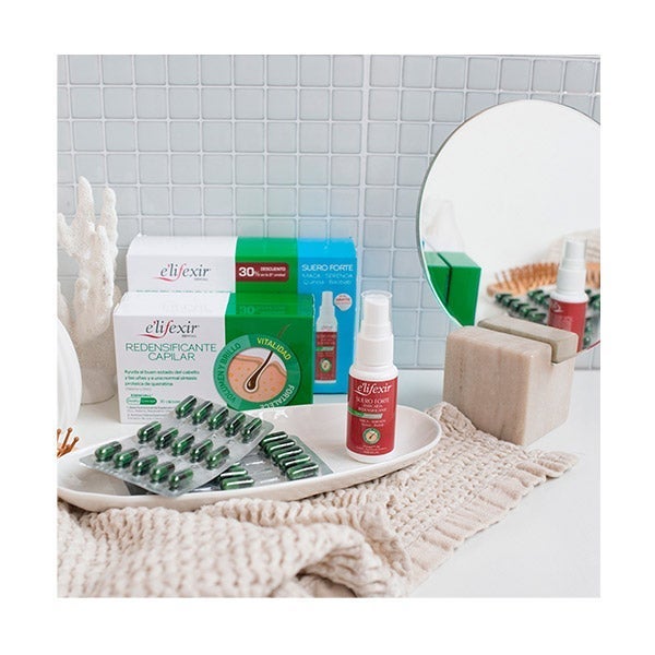 Tanto Elifexir Esenciall Redensificante Capilar em Cápsulas como Elifexir Dermo Soro Forte Anticaida Redensificante estão indicados para aquelas situações em que existe queda de cabelo.