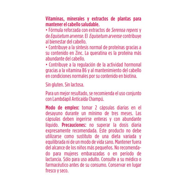 Tomar 2 cápsulas diárias de Lambdapil Antiqueda Cápsulas no café da manhã por um mínimo de 3 meses.