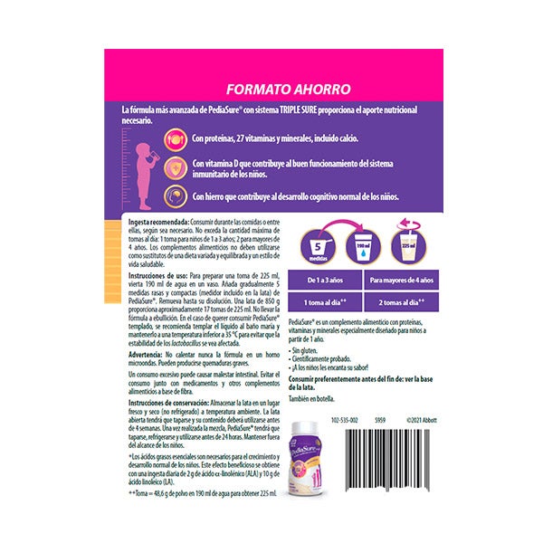 A fórmula mais avançada de PediaSure com sistema TRIPLE SURE fornece o aporte nutricional necessário.
