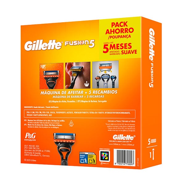PACK ECONÔMICO: Gillette Fusion5 Aparelho de Barbear para Homem, 1 Aparelho e 5 Recargas Para Até 5 Meses de Barbear Suave, Com Faixa Lubrificante para um Barbear Preciso