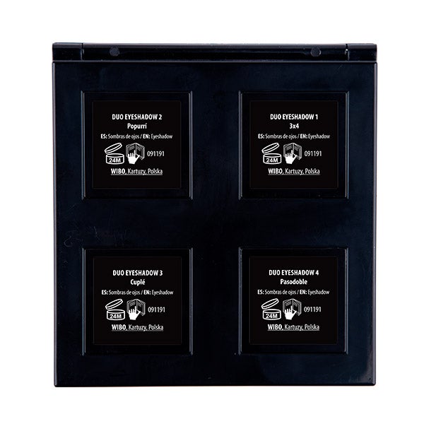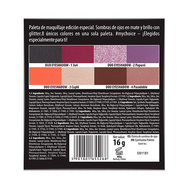 Paleta de sombra de olhos de edição especial com quatro godets duplos com acabamento mate e brilho com glitter.