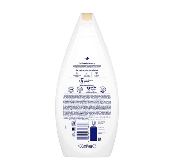 "Este gel de ducha hidratante suave te ayuda a convertir cada ducha en un acto de autocuidado, brindándote 24 horas de piel nutrida y suave como la seda. Esta fórmula utiliza una mezcla de limpiadores suaves de origen natural y nutrientes naturales de la piel para limpiarla suavemente y nutrir tu microbioma. Además, está libre de sulfatos SLES, tiene un 98%* de ingredientes biodegradables, está envasado en botellas de plástico reciclado al 100%** y está aprobado por PETA como vegano.