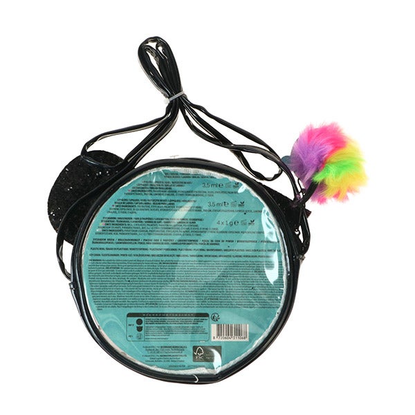 Dentro deste acessório indispensável você encontrará umas sombras de olhos, dois brilhos de lábios e dois aplicadores, para que possa compartilhar com sua melhor amiga. Prepare-se para a diversão!