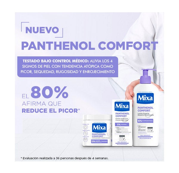 Sente que sua pele precisa de um cuidado um pouco mais intenso do que o oferecido pelo leite corporal? O leite corporal MIXA Panthenol Comfort se encarregará de proporcionar isso, pois se destaca por sua consistência espessa e sua capacidade de hidratar e nutrir de forma duradoura. Ele fornece à pele de todo o corpo a suavidade e nutrição que precisa, mima com sua textura cremosa e a deixa protegida do desconforto da secura.