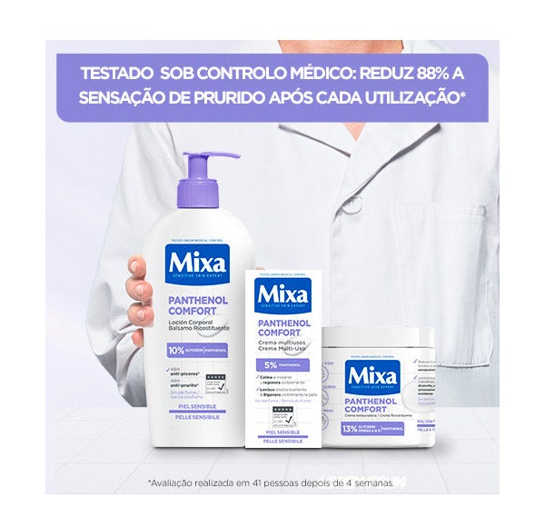 As peles secas e reativas requerem cuidados hidratantes e calmantes altamente concentrados que respeitem sua sensibilidade. Nossa fórmula nutritiva e anti-coceira é hipoalergênica, não gordurosa, não pegajosa e é absorvida instantaneamente. Acalma instantaneamente as peles secas e reativas. Anti-coceira 48H*.