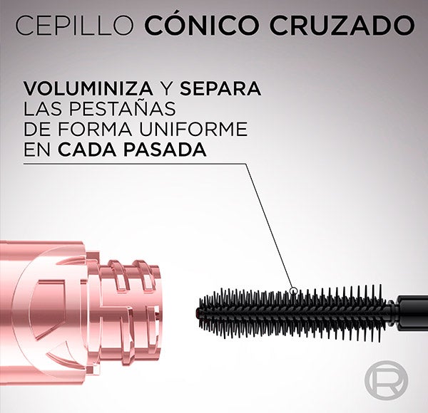 Seu exclusivo pincel cônico cruzado é projetado para dar volume e separar cada cílio, oferecendo grande comprimento e volume a cada aplicação.