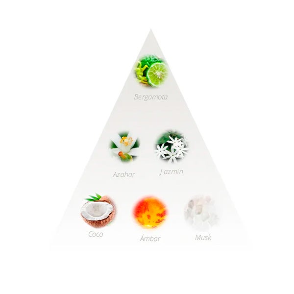 A água do paraíso mais secreto é apresentada através da frescura da Bergamota congelada e o toque ácido da maçã verde, dando lugar a um bouquet floral de Jasmim e Flor de Laranjeira prensada que desenha uma mulher ousada e de uma elegância inquestionável. O fundo flui lentamente entre notas de coco ambarado e uma trilha de Musk.