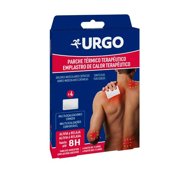 URGO Adesivo Térmico Terapêutico multi-localização relaxa eficazmente os músculos contraídos por dores musculares como fadiga muscular, tensão muscular, dor de pescoço (torcicolo) ou ombros e também contribui para o alívio a curto prazo de dores crônicas.