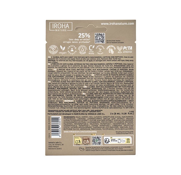Os novos patches de olhos Cuidado Global da Iroha Nature ajudam a diminuir rugas, bolsas e olheiras do contorno graças aos ativos que contém.