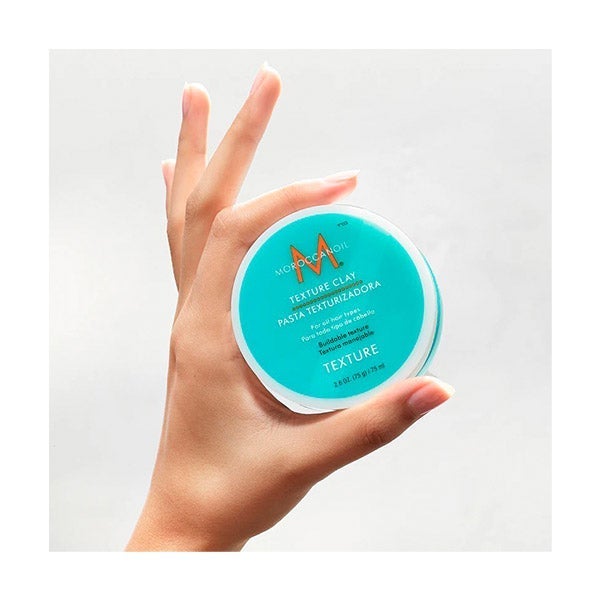 Fórmula eficaz e flexível de argila que define e esculpe para criar looks naturais com acabamento mate e fixação forte. A Pasta Texturizadora Moroccanoil® contém uma mistura de óleo de argan, manteiga de Karité e argila de bentonita para obter textura de mechas irregulares. Consiga estilos versáteis à sua medida com esta ferramenta unissex, ideal tanto para cabelo curto quanto longo, que lhe permitirá brincar com seu cabelo antes de fixar o nível de textura desejado. Controla o frizz durante todo o dia e proporciona um acabamento não oleoso ou pegajoso.