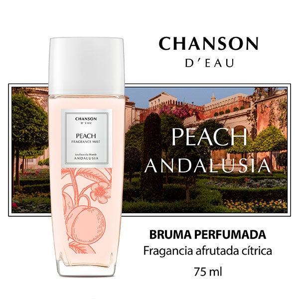 Embarque-se em uma viagem às paisagens banhadas pelo sol da Andaluzia com a névoa perfumada Les Eaux Du Monde Pêssego.