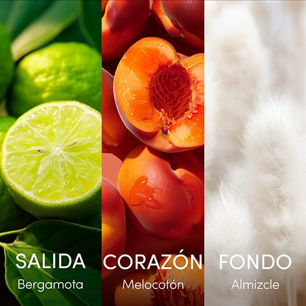 Esta fragrância cítrica e frutada para mulher se abre com uma saborosa bergamota, realçada por um aveludado pêssego doce e um profundo fundo de almíscar.