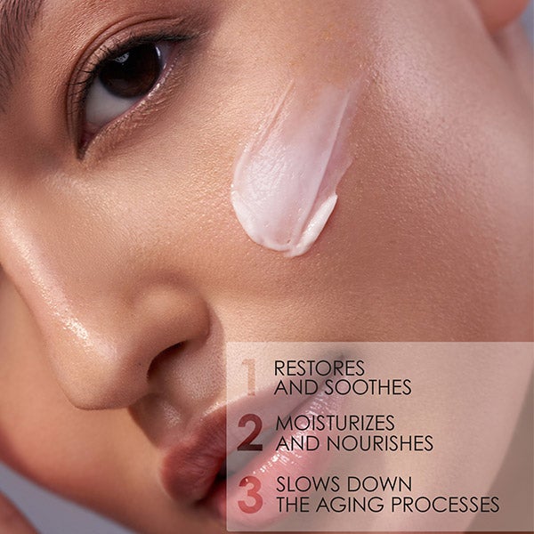 A crema facial oferece hidratação intensa, nutrição e restauração SOS.