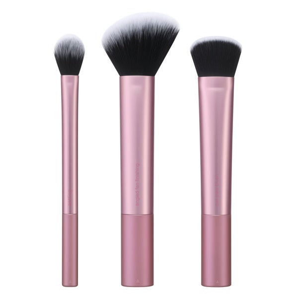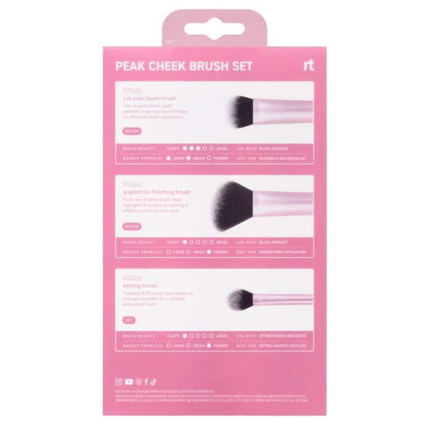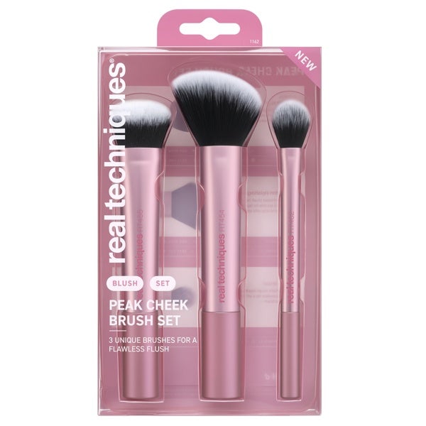 O conjunto de pincéis Real Techniques Peak Cheek Brush Set inclui 3 acessórios únicos para dar forma, esfumar e finalizar a maquiagem das bochechas com facilidade. Seja para um blush natural ou um iluminado esculpido, este conjunto oferece o controle para personalizar o seu brilho.