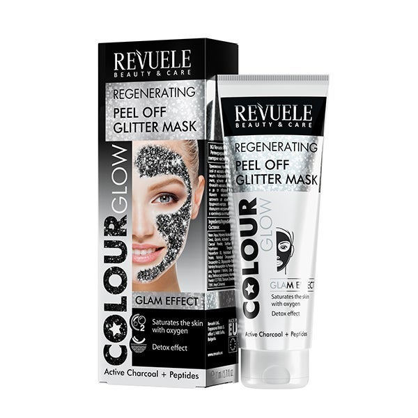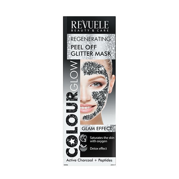 REVUELE COLOR GLOW BLACK MÁSCARA REGENERADORA PEEL OFF GLITTER.