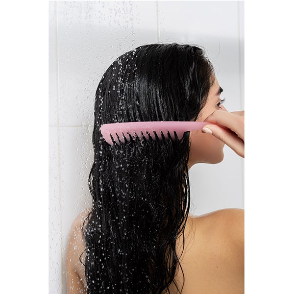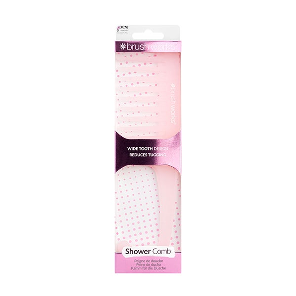 O Pente de Chuveiro Brushworks permite que você penteie seu condicionador no chuveiro com facilidade! Este pente é projetado para ajudar a saturar seu cabelo de maneira uniforme com sua máscara ou condicionador favorito. Com um material de toque suave e dentes largos, previne danos ao pentear o cabelo molhado. Com seu cabo curvado, este pente pode ser pendurado no banheiro para um uso fácil sempre que você precisar.