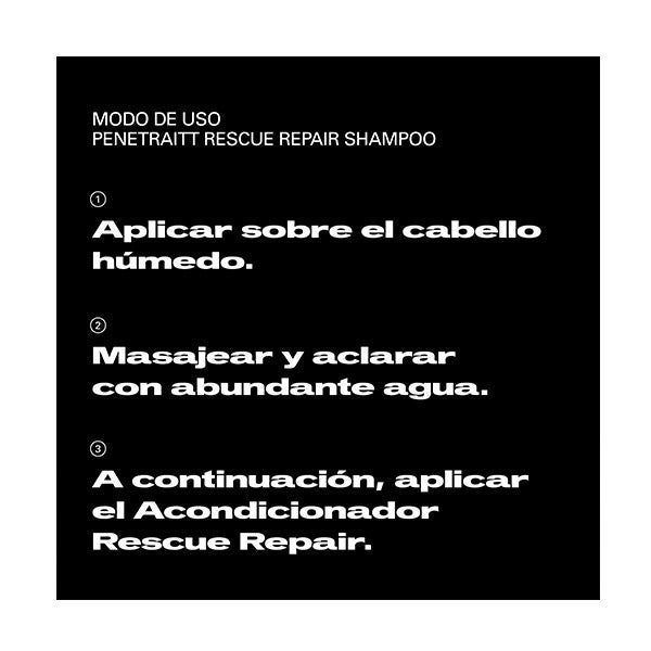 Para reparar e fortalecer o cabelo, massageie o Shampoo Penetraitt sobre o cabelo úmido para ativar a espuma, enxágue com bastante água e repita se necessário. Em seguida, aplique o condicionador Penetraitt. Um shampoo que cuida do cabelo enfraquecido.