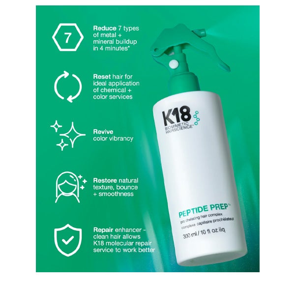 · Potenciador de reparação: o cabelo limpo e desmineralizado permite que o serviço de reparação molecular K18 funcione melhor.