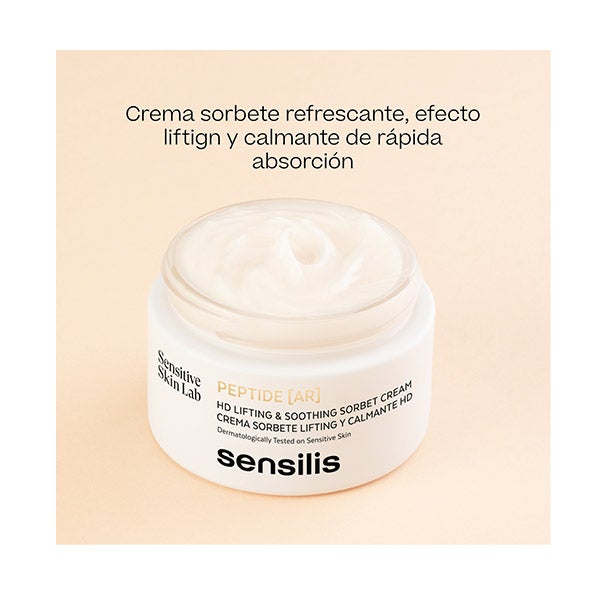 Creme sorbet com efeito lifting e calmante, que reduz as rugas de forma imediata, desenhado para peles sensíveis.