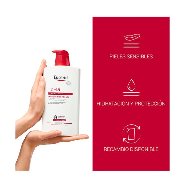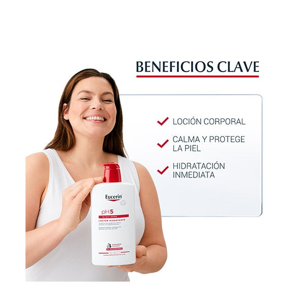 Eucerin pH5 Loção é uma loção corporal suave que está recomendada para pessoas com a pele corporal sensível ou que sofrem de alergias do tipo 1.