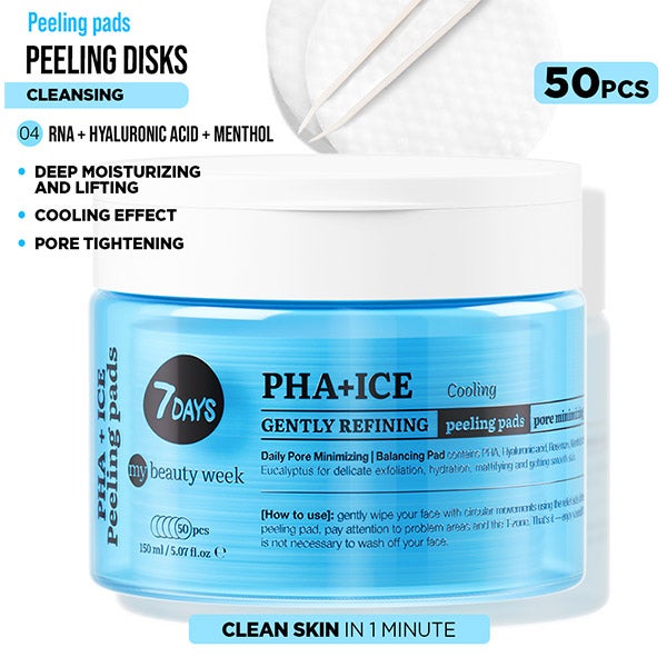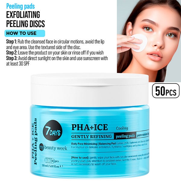 Almofadas esfoliantes faciais refrescantes para minimizar os poros.