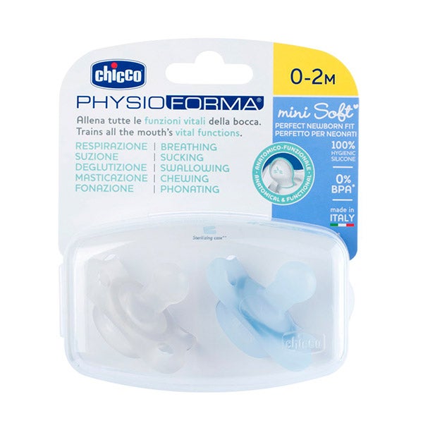 Chupeta Chicco Physioforma Minisoft especialmente projetada para bebês recém-nascidos. É pequena, de uma única peça e fabricada com 100% de silicone, o que a torna fácil de limpar e esterilizar. Seu design suave e ergonômico garante o máximo conforto para o bebê. Seu design suave, ergonômico, compacto e leve garante o máximo conforto para o bebê e facilita seu manuseio.
