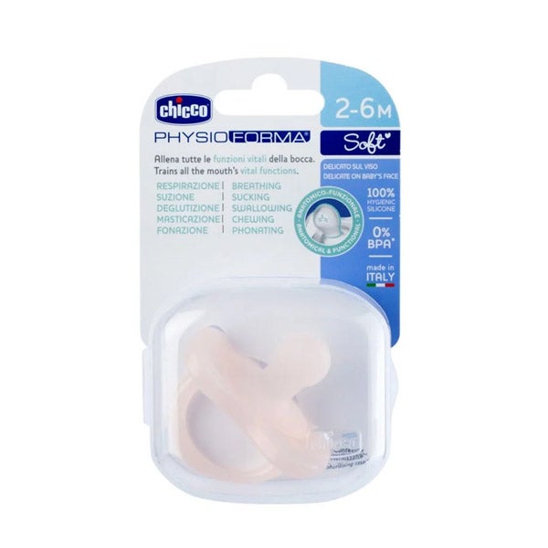 Chupeta Chicco Physioforma Soft de silicone macio e delicado com o rosto do bebê. Physioforma® Soft é projetado para não interromper o sono do bebê e não deixar marcas no rosto. Material 100% de silicone: higiênico, indeformável e prático. Seu acabamento exclusivo SOFT é sedoso e suave. Seu disco possui orifícios de ventilação que permitem a passagem do ar e reduzem o acúmulo de saliva. Aprovado por estudos: demonstraram que as chupetas Chicco PhysioForma® treinam todas as funções vitais da boca para um crescimento saudável: respirar, sugar, engolir, mastigar e falar.