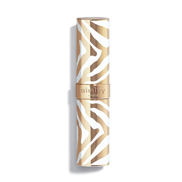 Sua carcaça, similar à de uma joia, está adornada com listras de zebra brancas e douradas, como visto na coleção Le Phyto-Rouge. Está disponível em formato recarregável.