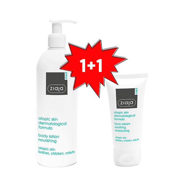 Pela compra da loção corporal nutritiva para pele atópica, leve o creme facial, totalmente grátis! Promoção 1+1 da Ziaja.